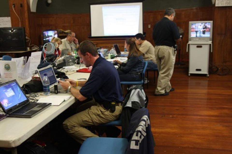 Inline image of FEMA officials working online in Brownsville during Hurricane Dolly, Public Domain Mark 1.0