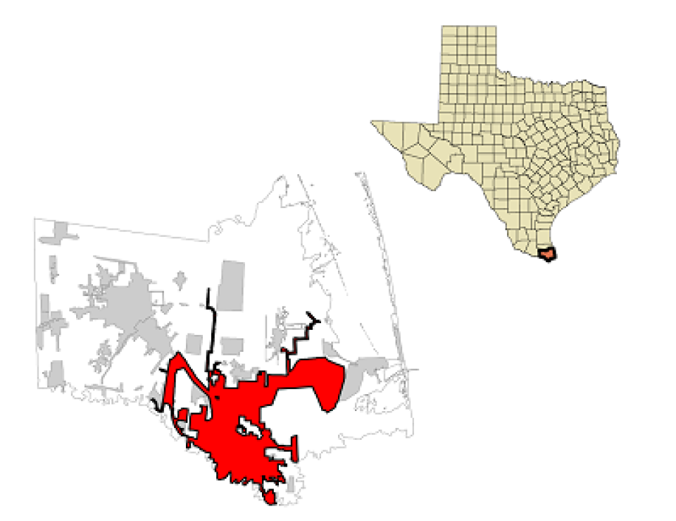 Inline map of Brownsville, Texas courtesy of Wikimedia Commons, Attribution-ShareAlike 3.0 Unported (CC BY-SA 3.0)