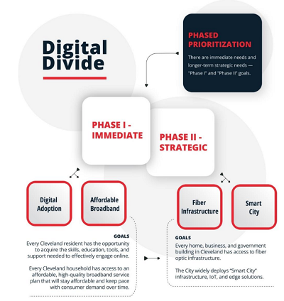 Acutely aware of just how many Clevelanders are being left in the digital dust, the first phase of the city’s plan, according to the RFP, aims to reach two immediate goals: