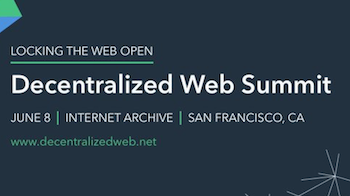 The Decentralized Web Summit: Locking the Web Open will happen on June 8th and 9th at Internet Archive in San Francisco. The event will be live streamed if you can’t attend in person.