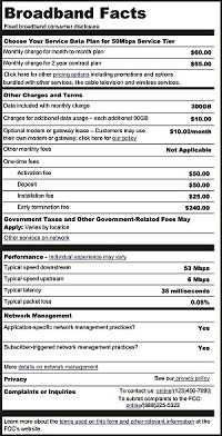Similar to the nutrition label on the back of packaged food in grocery stores, the broadband label requires the transparent disclosure of broadband pricing and service information to help customers make informed decisions about service.
